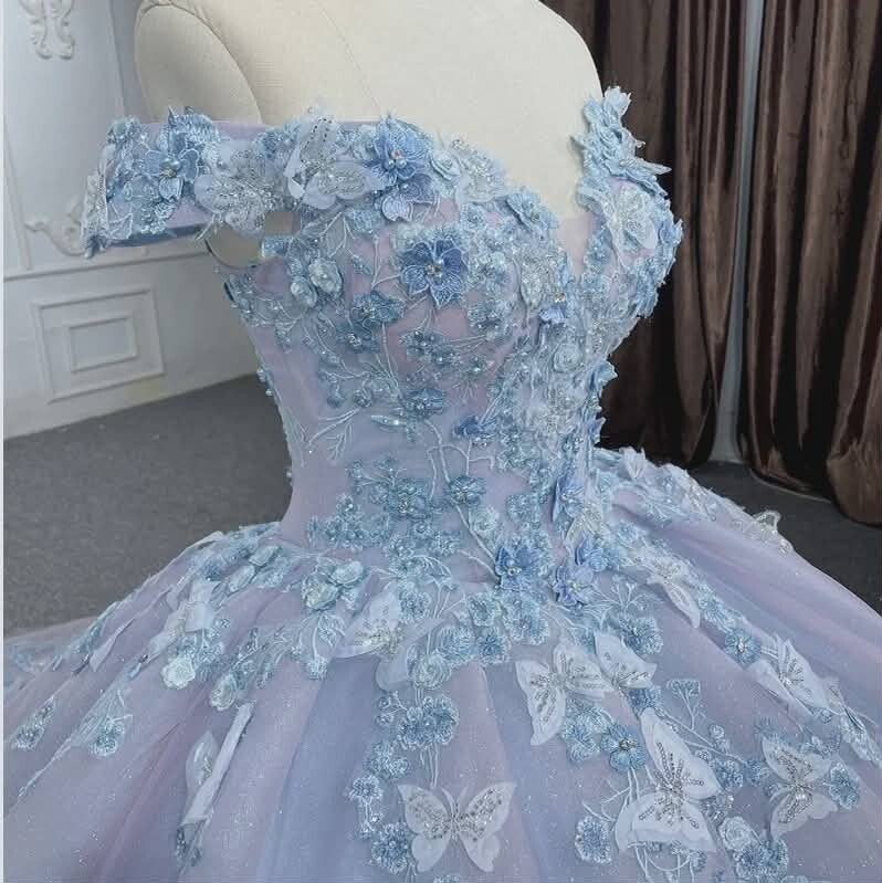 “Celestial Crown” is made for the quinceañera who wants to shine with soft, ethereal elegance. The corset is covered in delicate 3D flowers and icy blue appliqués that give the dress a magical, fairytale glow. The voluminous skirt opens in airy layers of tulle, creating a luminous, flowing silhouette with every step. Subtle embroidered details add a touch of sparkle that makes the entire gown look straight out of a royal fantasy. A perfect choice for those who want that classic princess look—elevated, dreamy, and absolutely unforgettable.